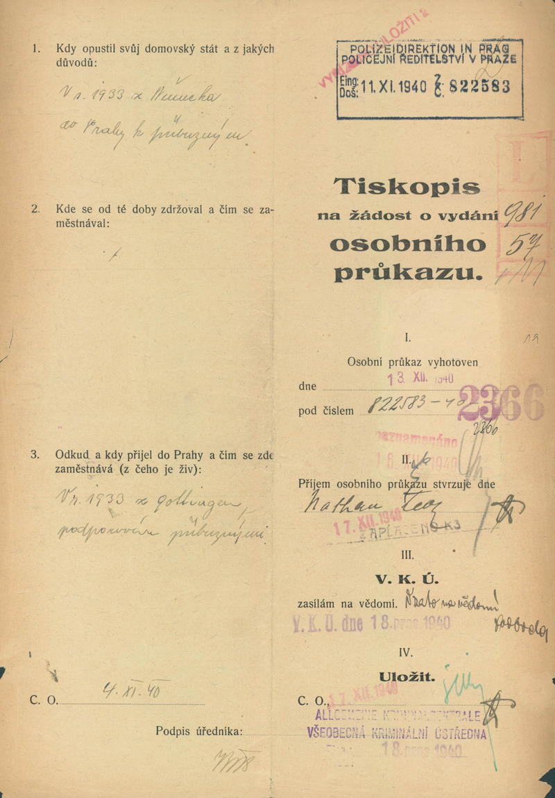 Lewy Nathan: Žádost o vydání občanské legitimace