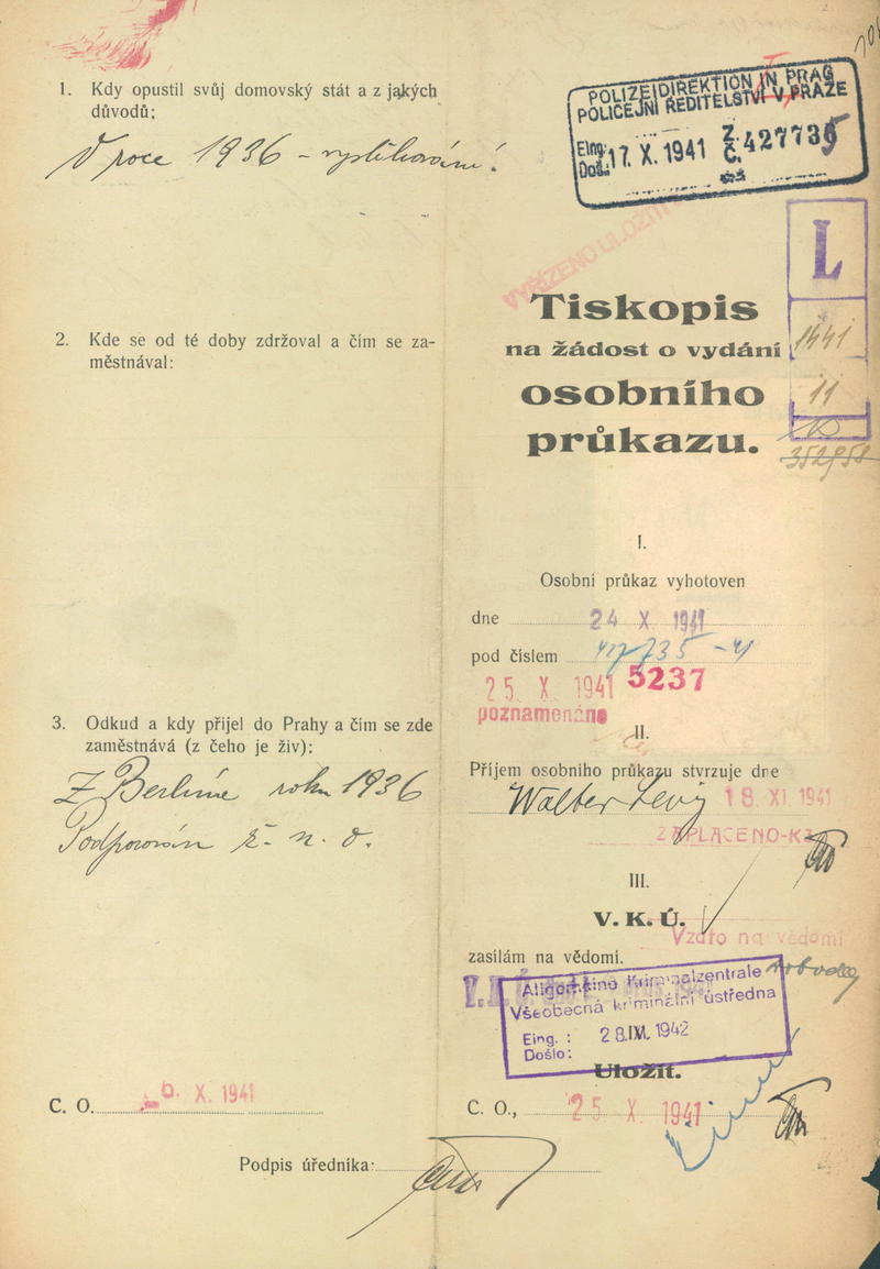Nationalarchiv Prag > Polizei-Direktion Prag > 1941-1950 > L > Levý Valtr