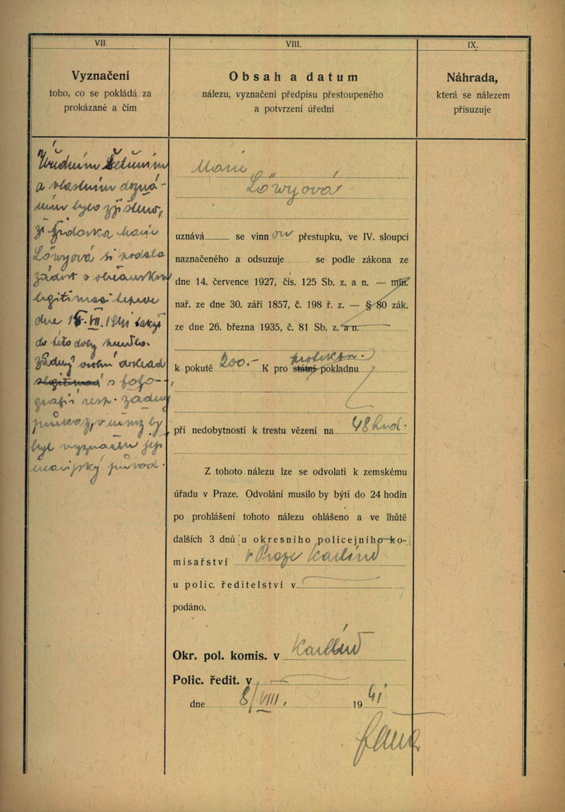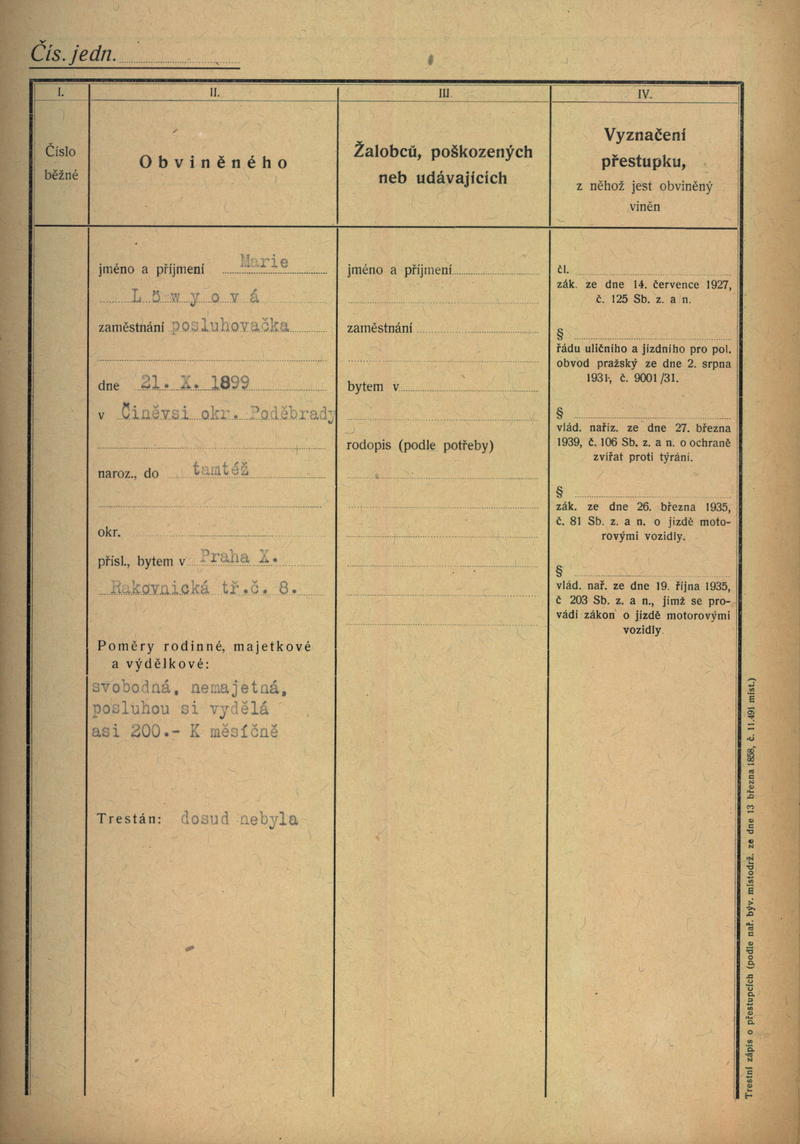 Nationalarchiv Prag > Polizei-Direktion Prag > 1941-1950 > L > Löwová Marie