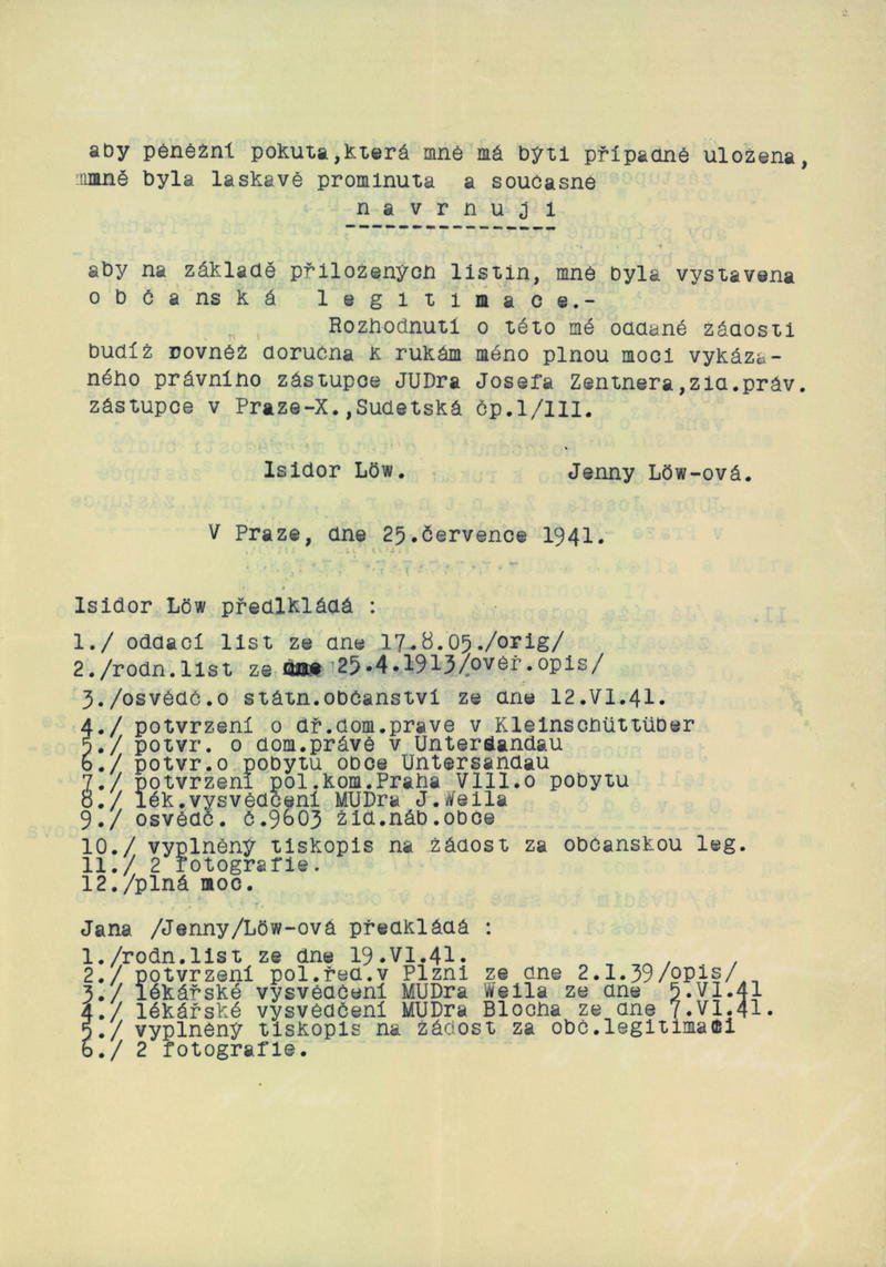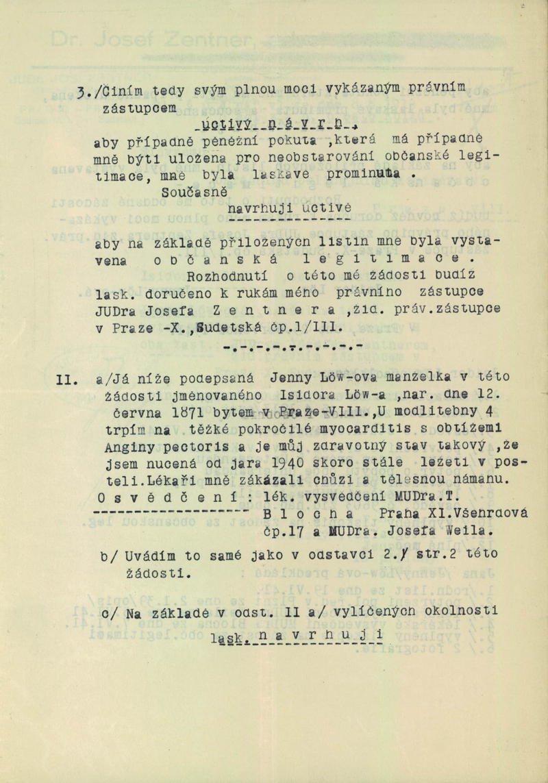 Löwová Evženie: Žádost o vydání občanské legitimace