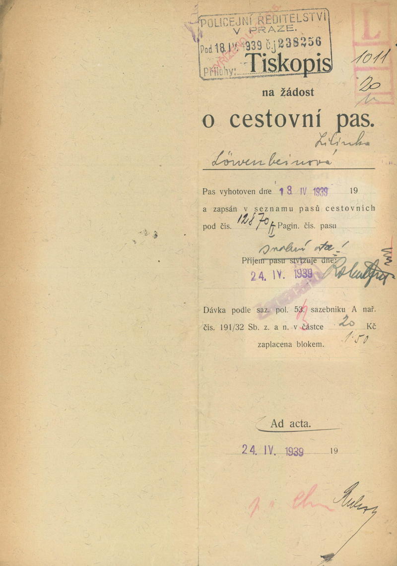 Nationalarchiv Prag > Polizei-Direktion Prag > 1941-1950 > L > Löwenbeinová Lily