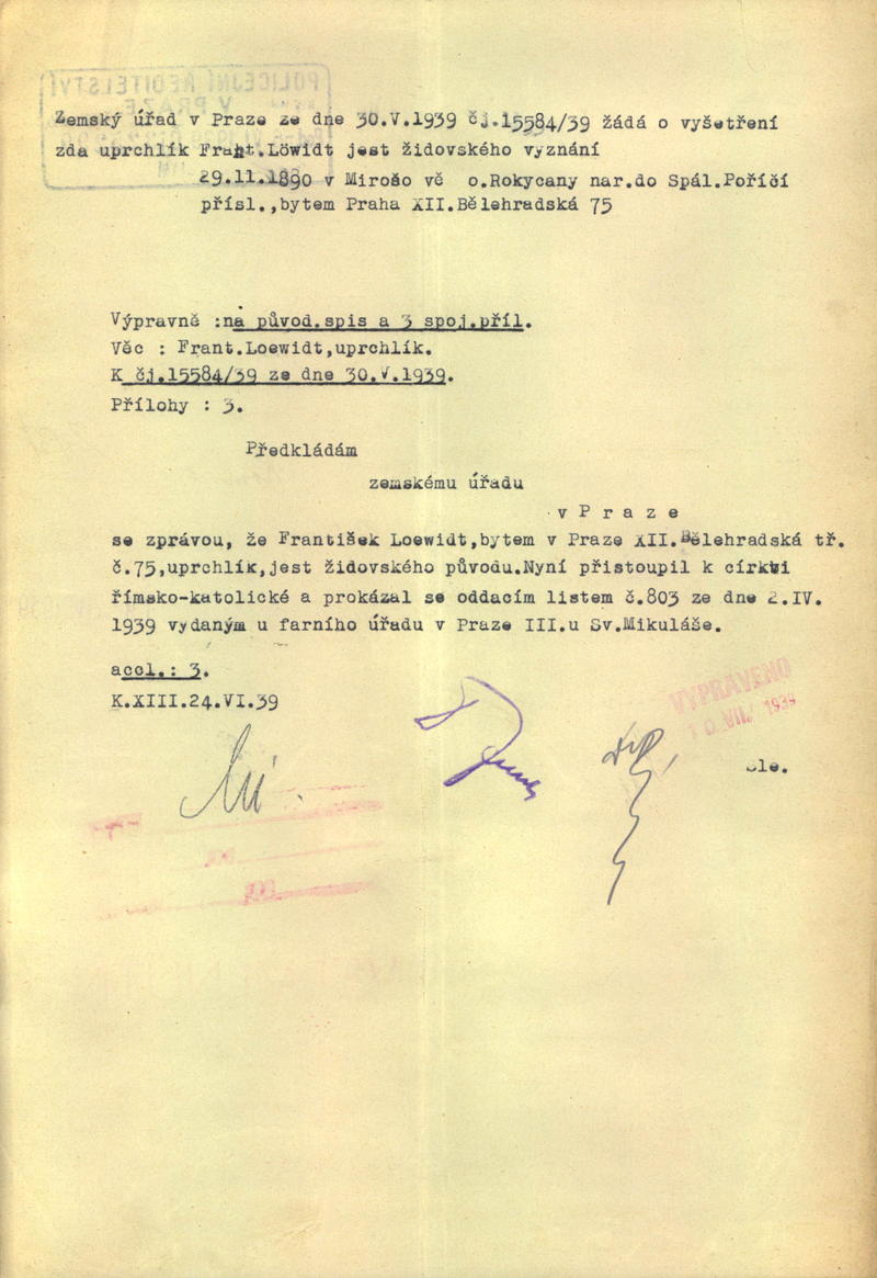 Löwidt František: Šetření o židovském původu
