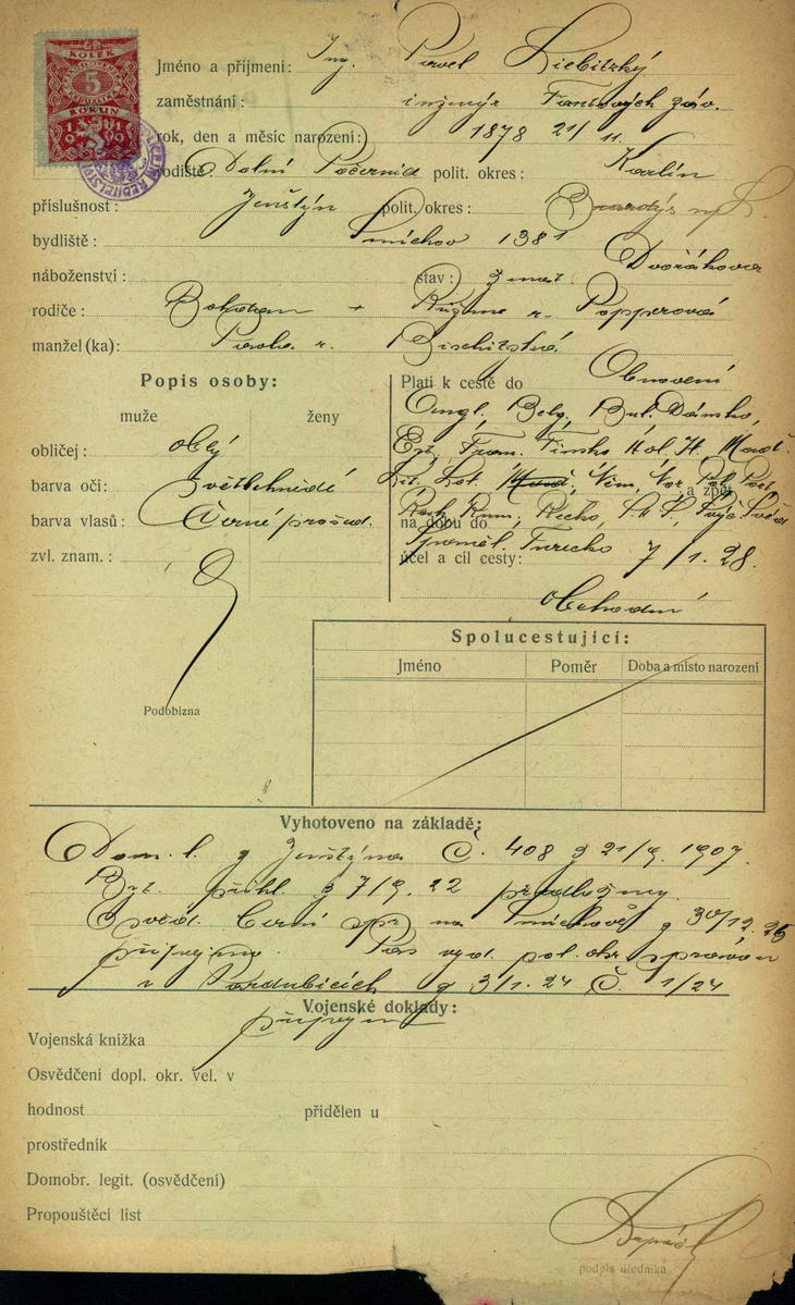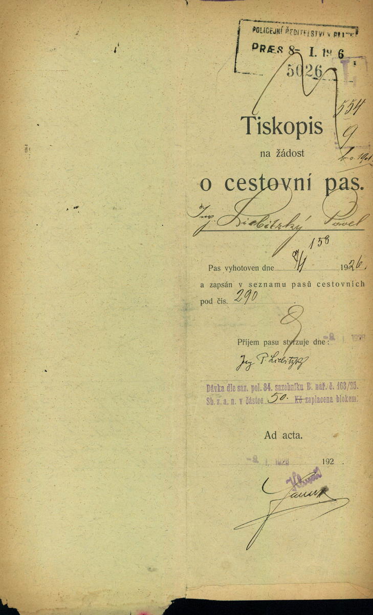 Libitzký Pavel: Žádost o vydání cestovního pasu