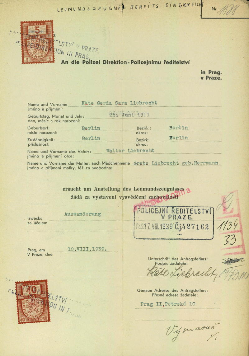 Nationalarchiv Prag > Polizei-Direktion Prag > 1941-1950 > L > Liebrechtová Kateřina