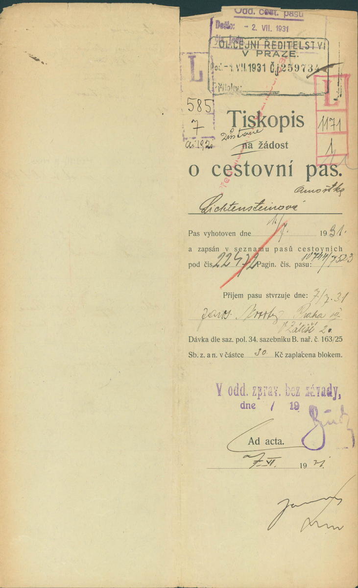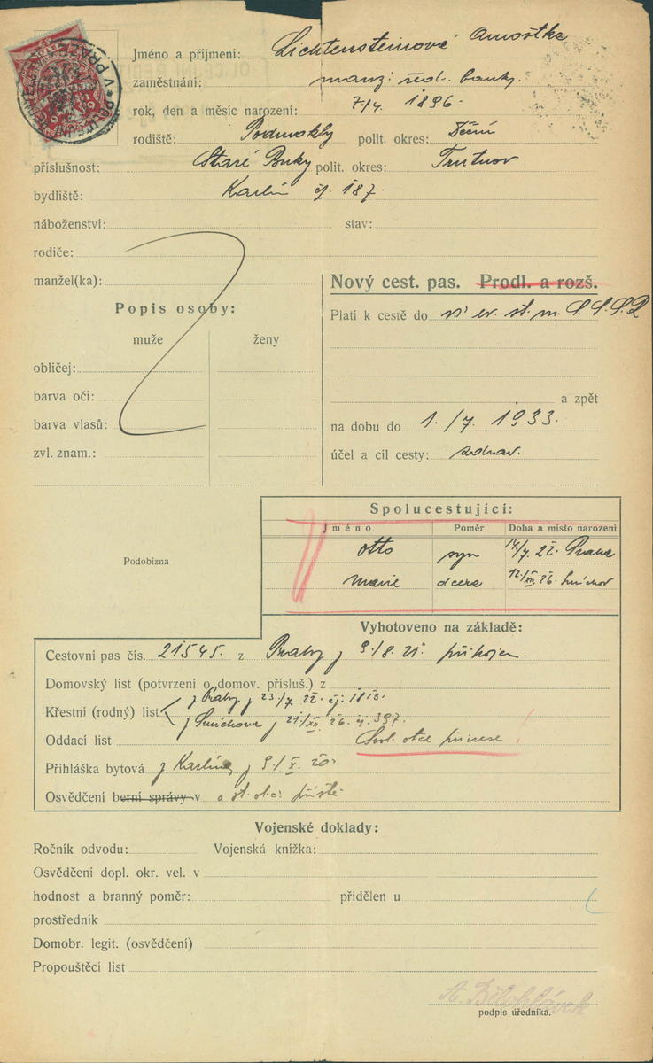 Lichtensteinová Ernestina: Žádost o připsání dětí do cestovního pasu