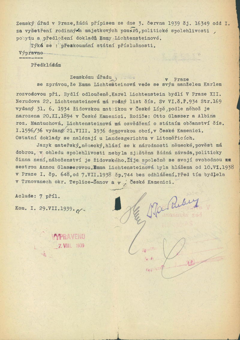Nationalarchiv Prag > Polizei-Direktion Prag > 1941-1950 > L > Lichtensteinová Ema