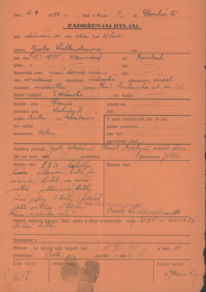 Nationalarchiv Prag > Polizei-Direktion Prag > 1941-1950 > L > Lichtensteinová Gisela