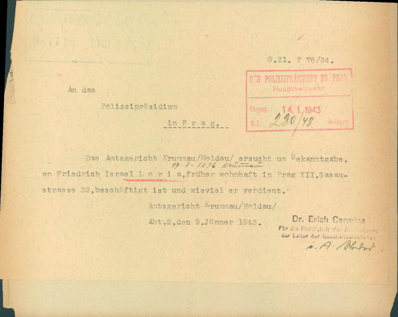 Nationalarchiv Prag > Polizei-Direktion Prag > 1941-1950 > L > Loria Friedrich