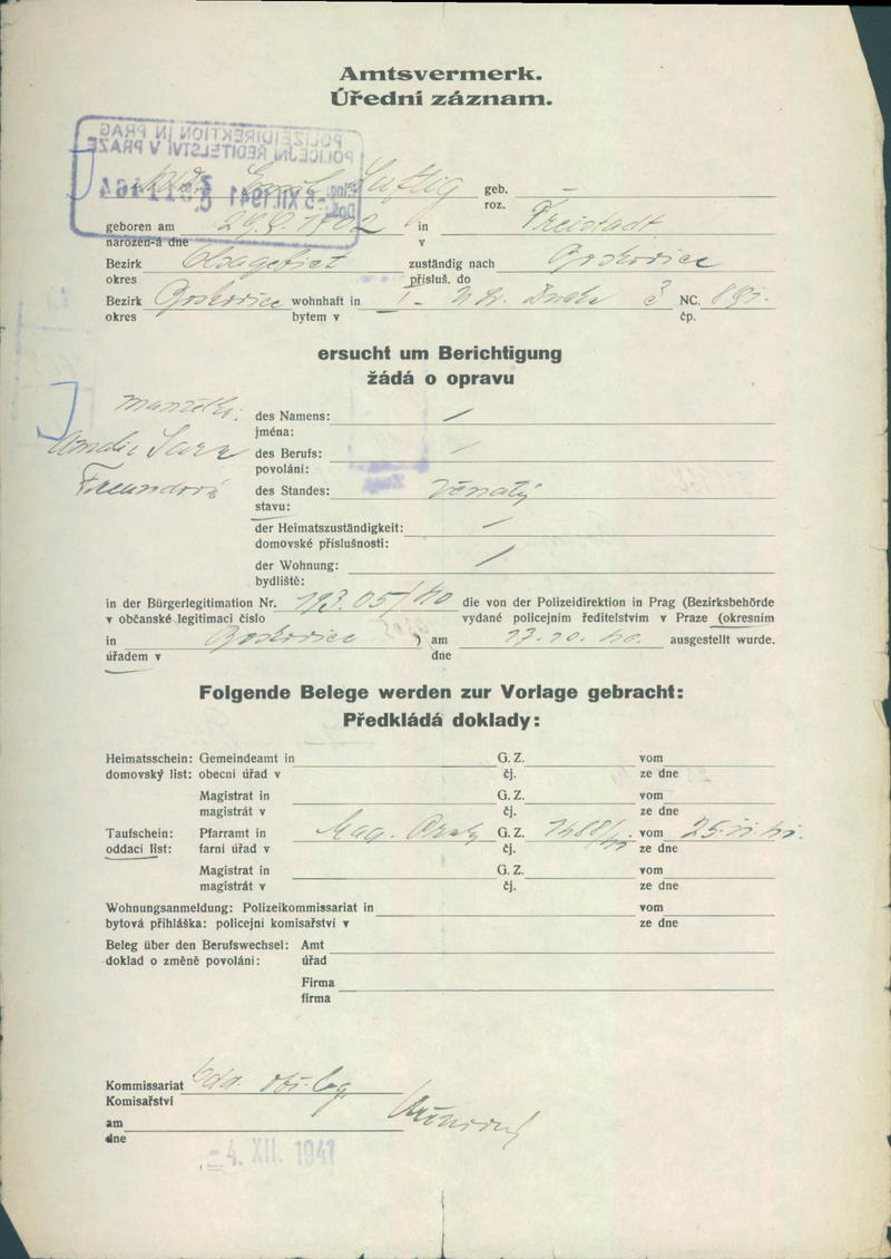 Luftig Emil: Žádost o opravu v občanské legitimaci