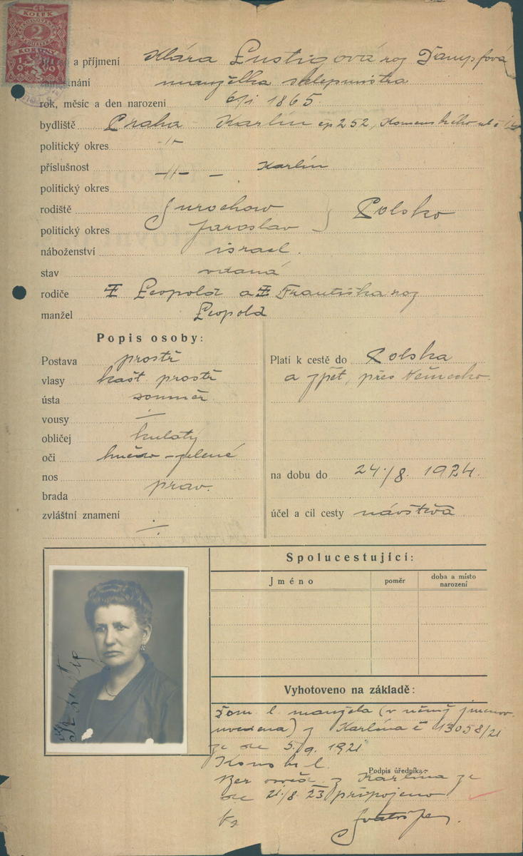 Lustigová Klára: Žádost o vydání cestovního pasu