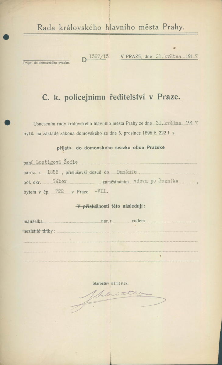 Lustigová Žofie: Nabytí domovského práva
