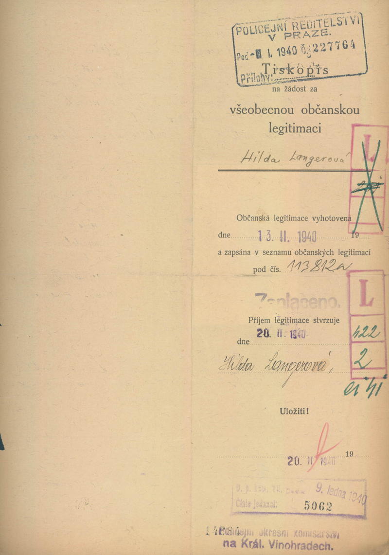 Langerová Hilda: Žádost o vydání občanské legitimace