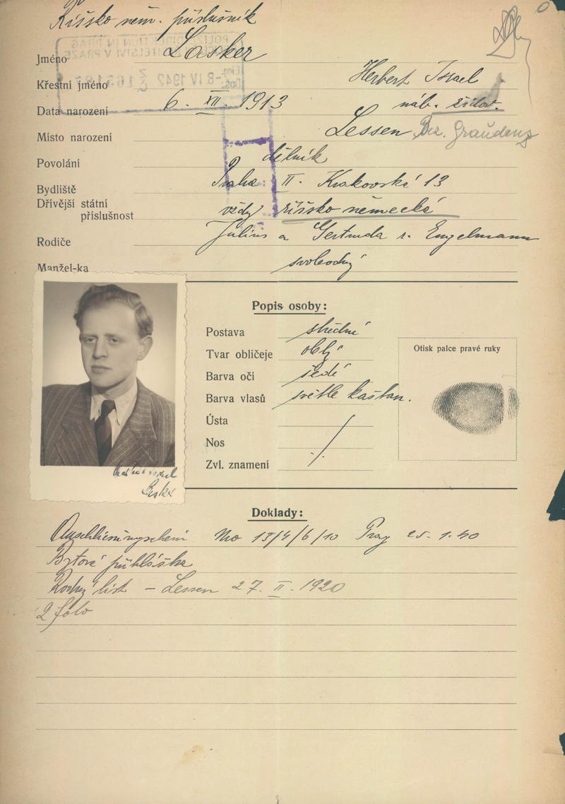 Nationalarchiv Prag > Polizei-Direktion Prag > 1941-1950 > L > Lasker Herbert