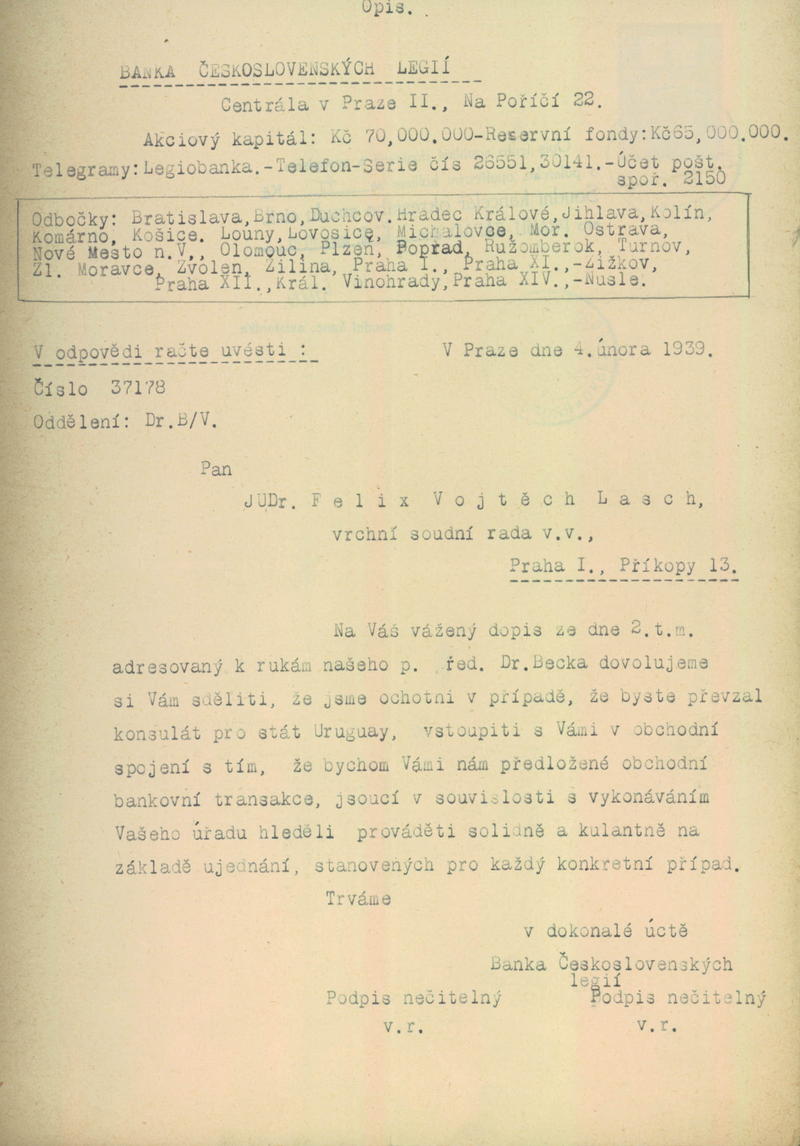 Lasch Felix Adalbert: Potvrzení obchodního spojení