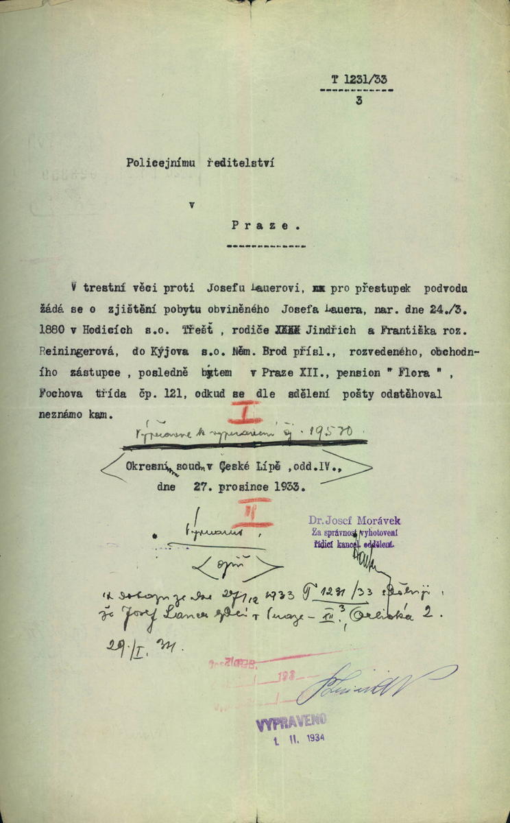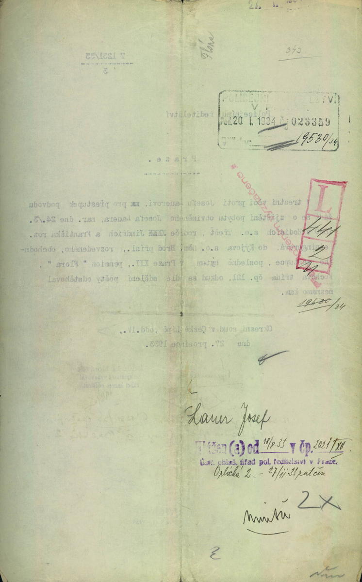 Nationalarchiv Prag > Polizei-Direktion Prag > 1941-1950 > L > Lauer Josef