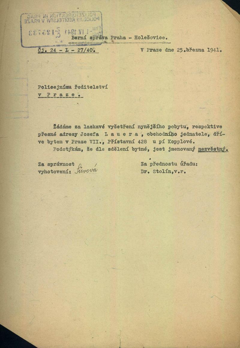 Nationalarchiv Prag > Polizei-Direktion Prag > 1941-1950 > L > Lauer Josef