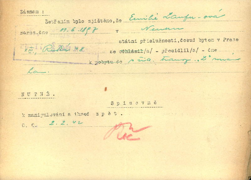 Nationalarchiv Prag > Polizei-Direktion Prag > 1941-1950 > L > Lauferová Emilie