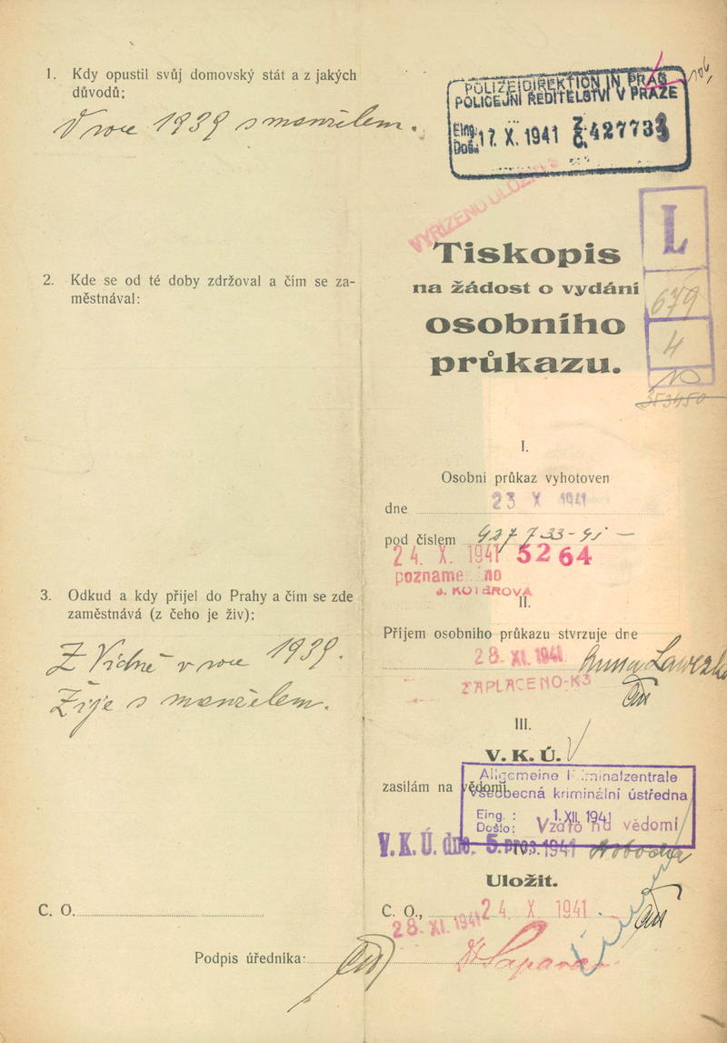Nationalarchiv Prag > Polizei-Direktion Prag > 1941-1950 > L > Lawezká Anna