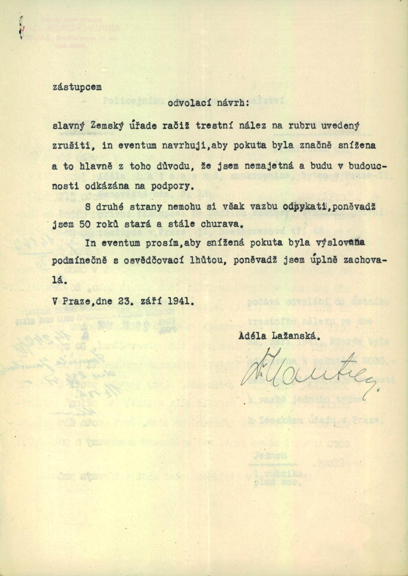 Lažanská Adéla: Odvolání proti trestnímu nálezu