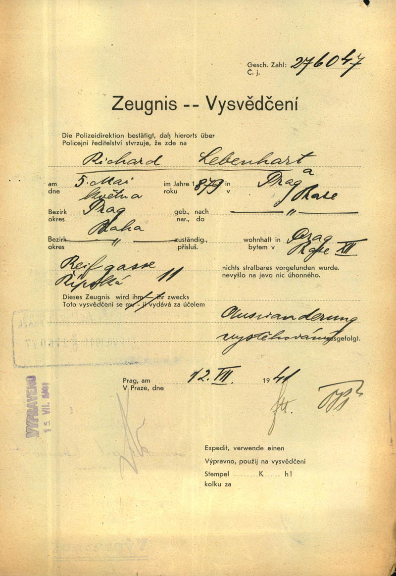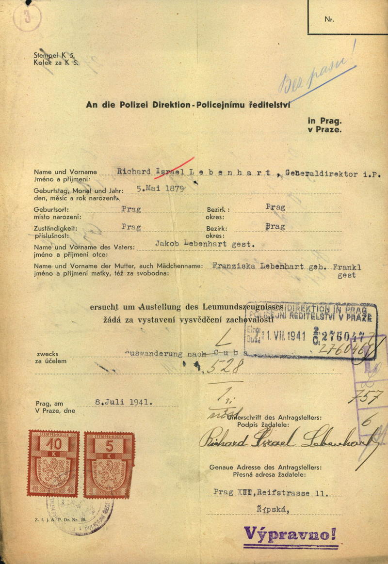 Nationalarchiv Prag > Polizei-Direktion Prag > 1941-1950 > L > Lebenhart Richard