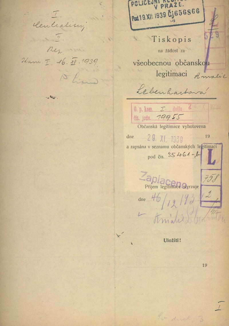 Lebenhartová Amálie: Žádost o vydání občanské legitimace