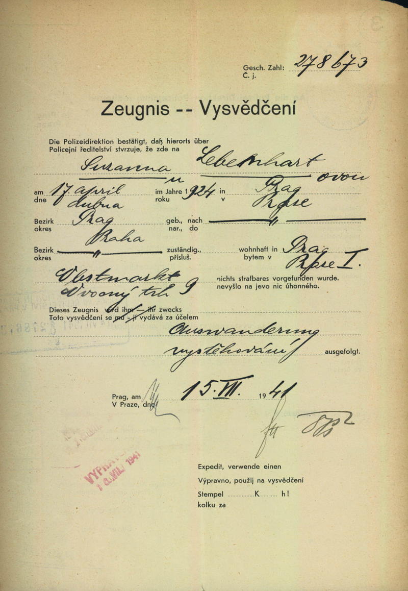 Nationalarchiv Prag > Polizei-Direktion Prag > 1941-1950 > L > Lebenhartová Zuzana