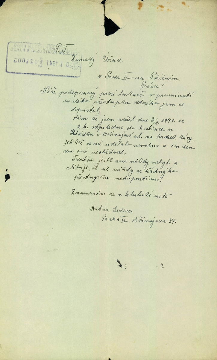 Nationalarchiv Prag > Polizei-Direktion Prag > 1941-1950 > L > Lederer Artur