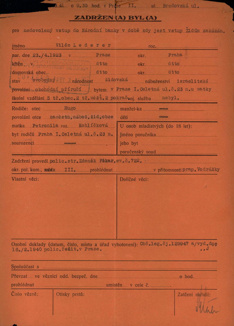 Nationalarchiv Prag > Polizei-Direktion Prag > 1941-1950 > L > Lederer Vilém