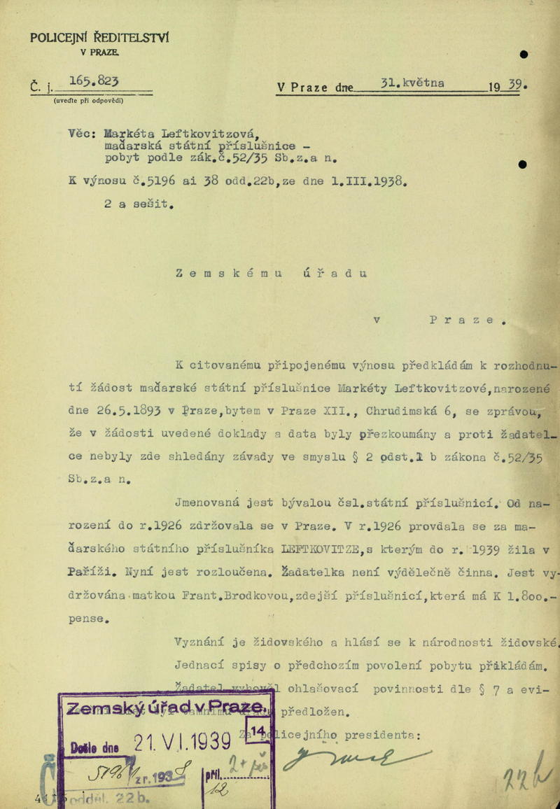 Nationalarchiv Prag > Polizei-Direktion Prag > 1941-1950 > L > Lefkowitsová Markéta