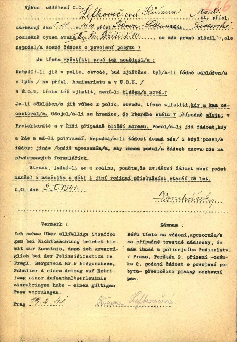 Nationalarchiv Prag > Polizei-Direktion Prag > 1941-1950 > L > Lefkovičová Růžena