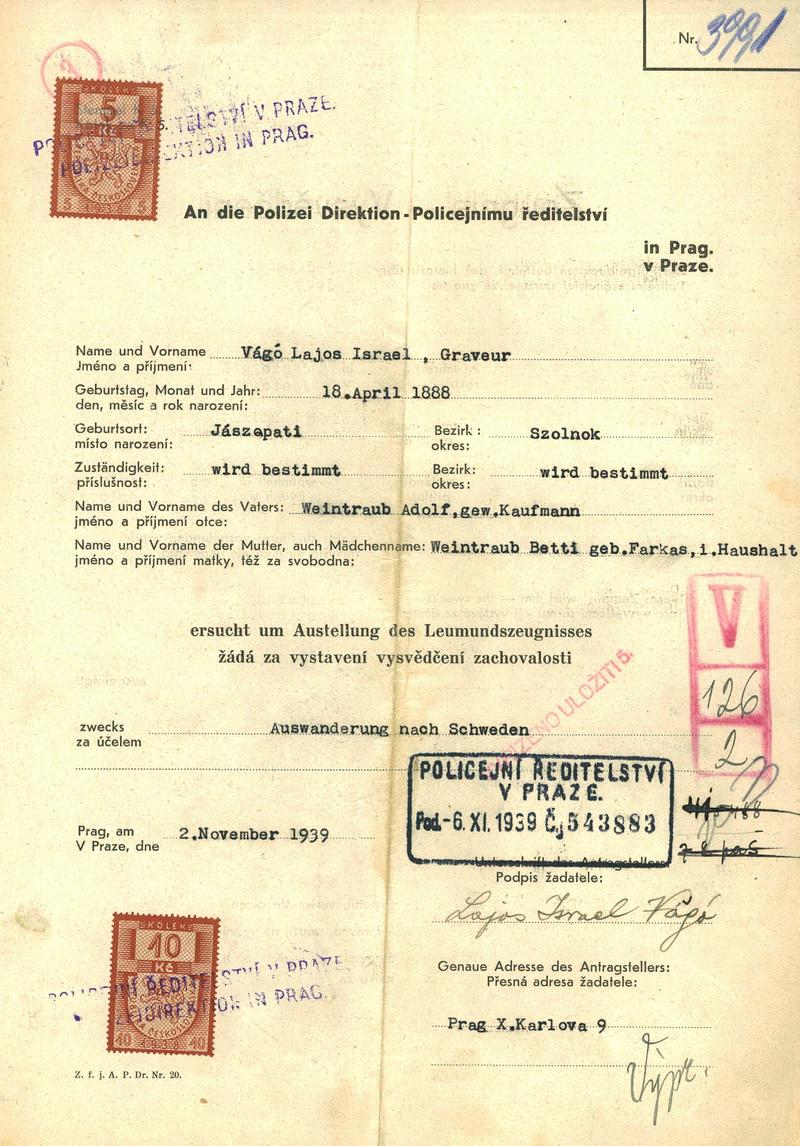 Nationalarchiv Prag > Polizei-Direktion Prag > 1931-1940 > V > Vágo Ludwig
