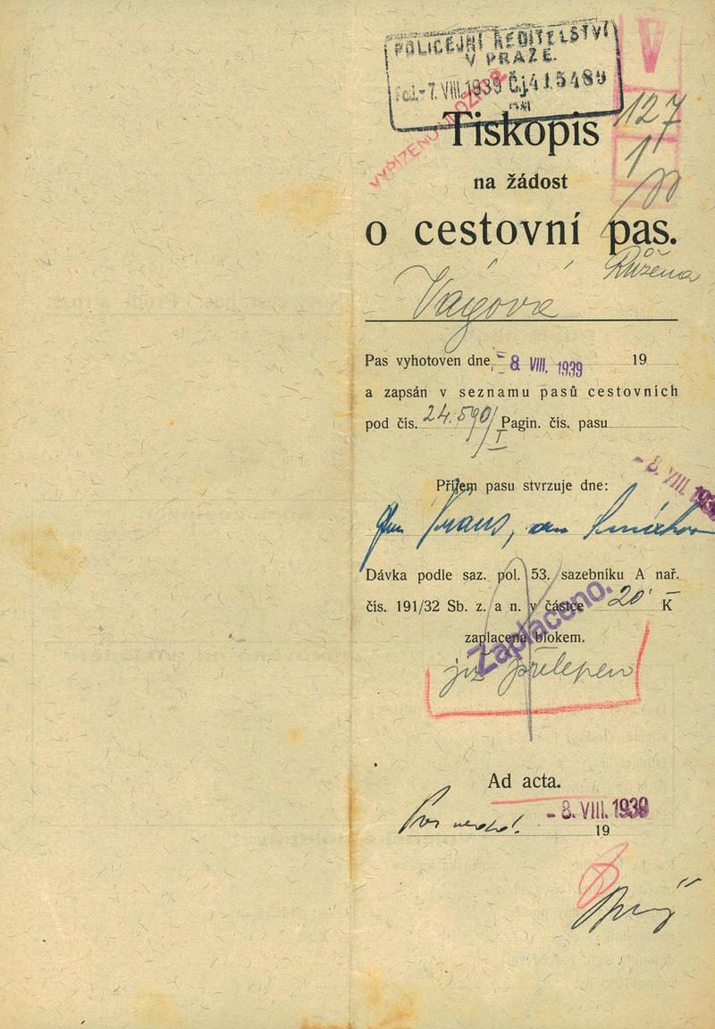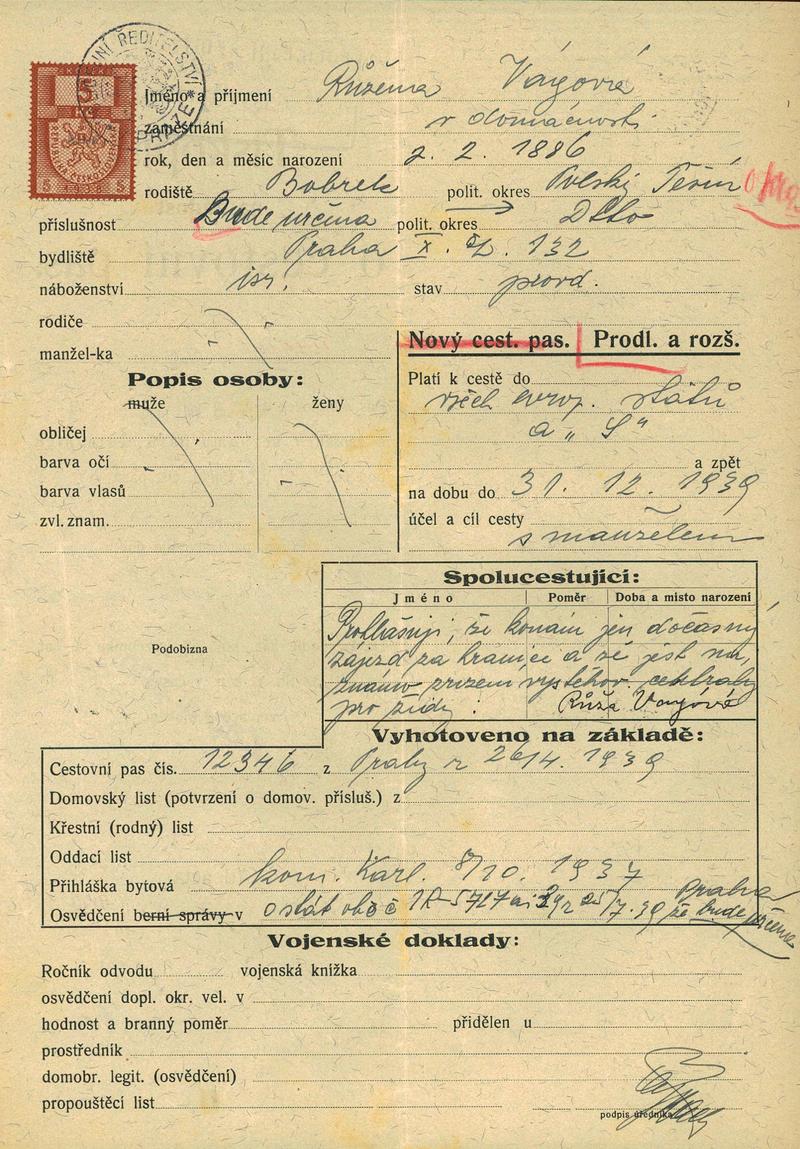 Vágová Růžena: Žádost o prodloužení a rozšíření cestovního pasu