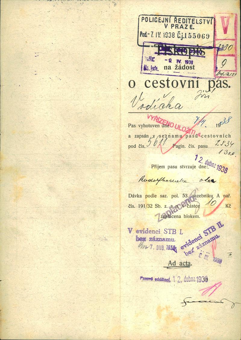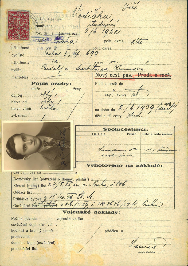 Vodička Jiří: Žádost o vydání cestovního pasu