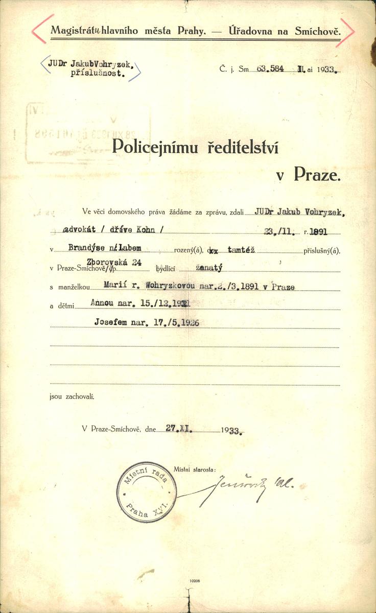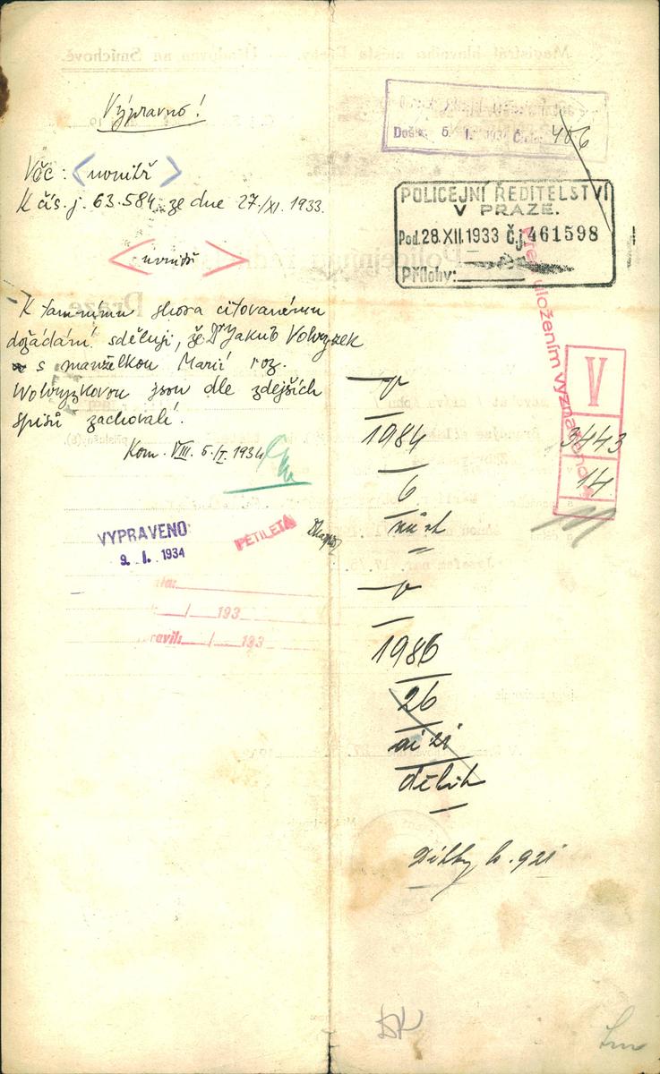Nationalarchiv Prag > Polizei-Direktion Prag > 1931-1940 > V > Vohryzek Jakob