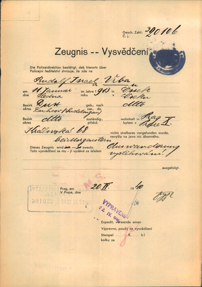 Nationalarchiv Prag > Polizei-Direktion Prag > 1941-1950 > V > Vrba Rudolf