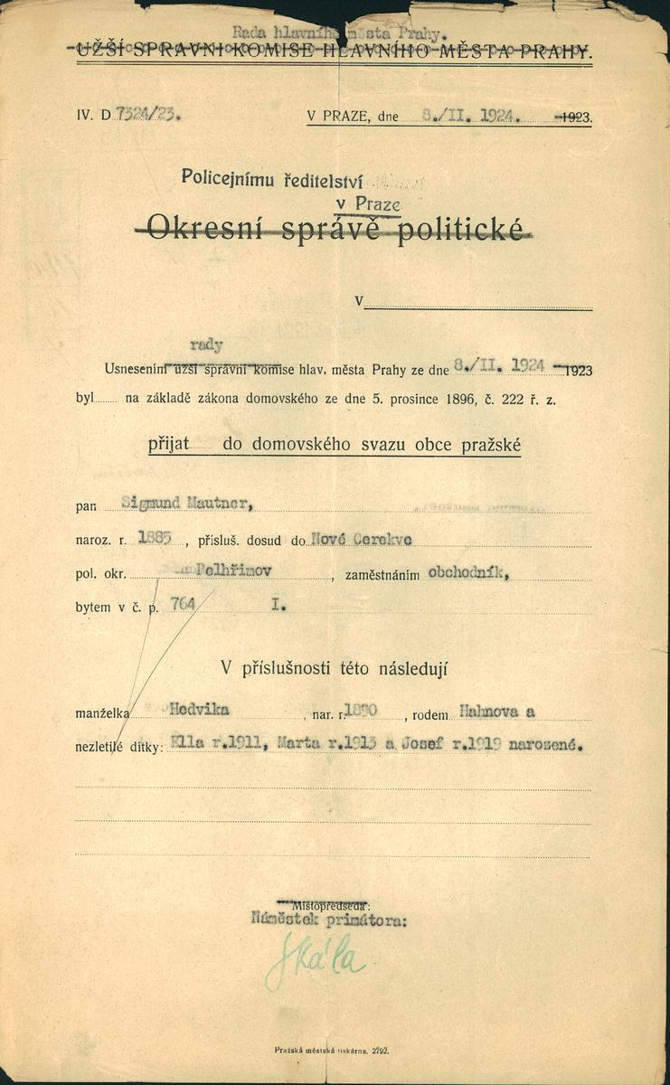Nationalarchiv Prag > Polizei-Direktion Prag > 1931-1940 > M > Mautner Zikmund