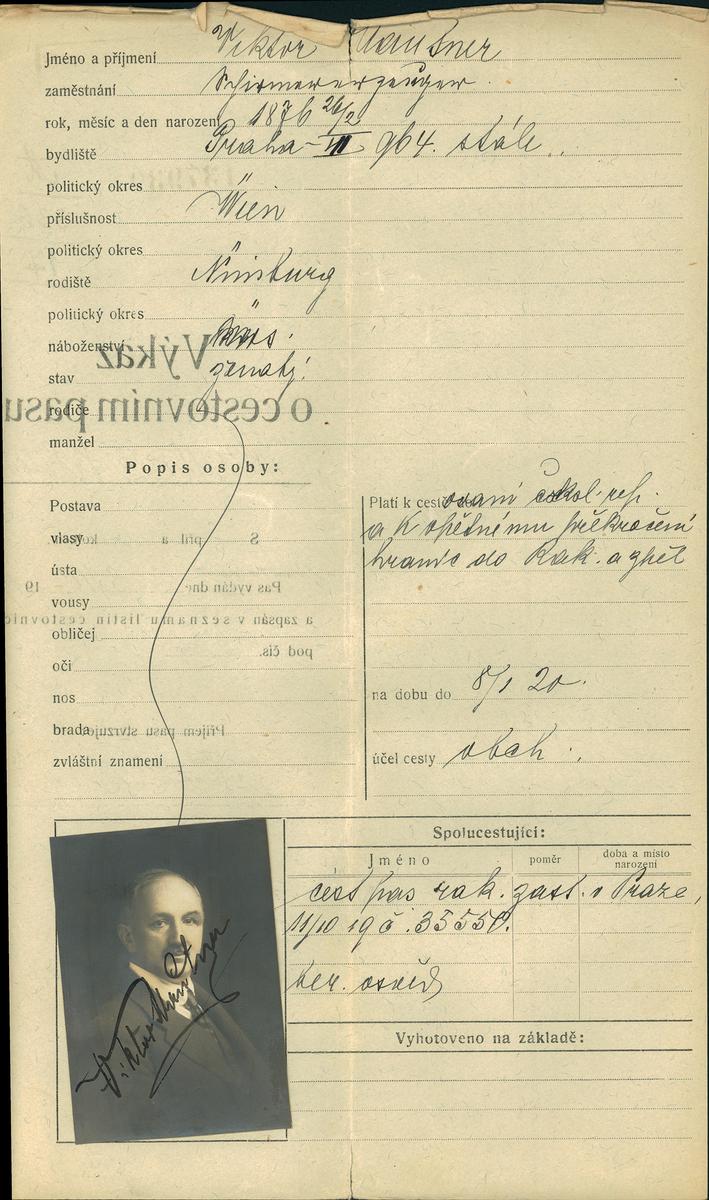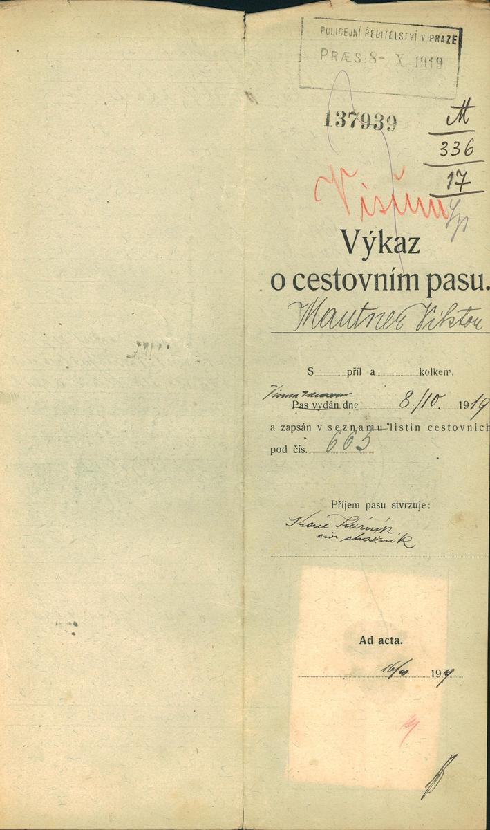 Mautner Viktor: Žádost o vydání cestovního pasu