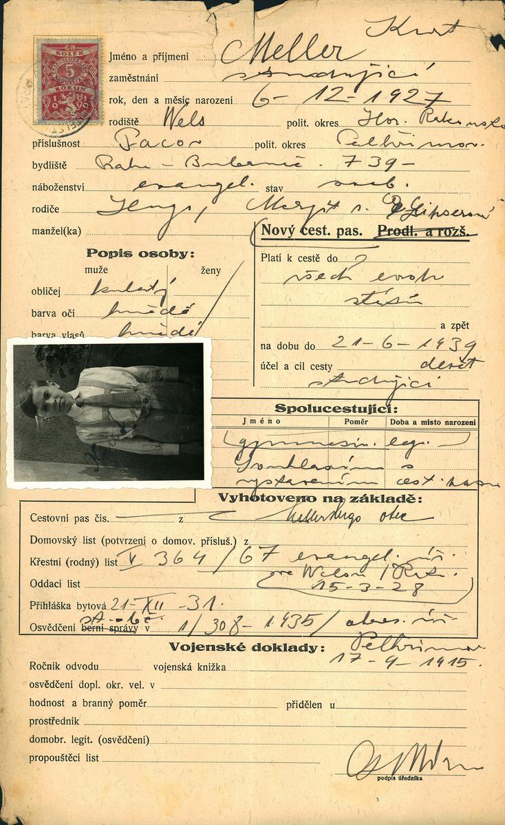 Meller Kurt H.: Žádost o vydání cestovního pasu