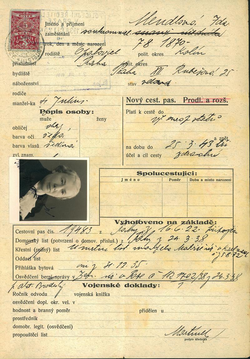Mendlová Ida: Žádost o vydání cestovního pasu