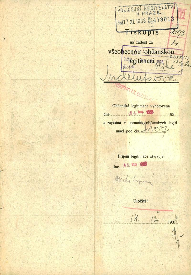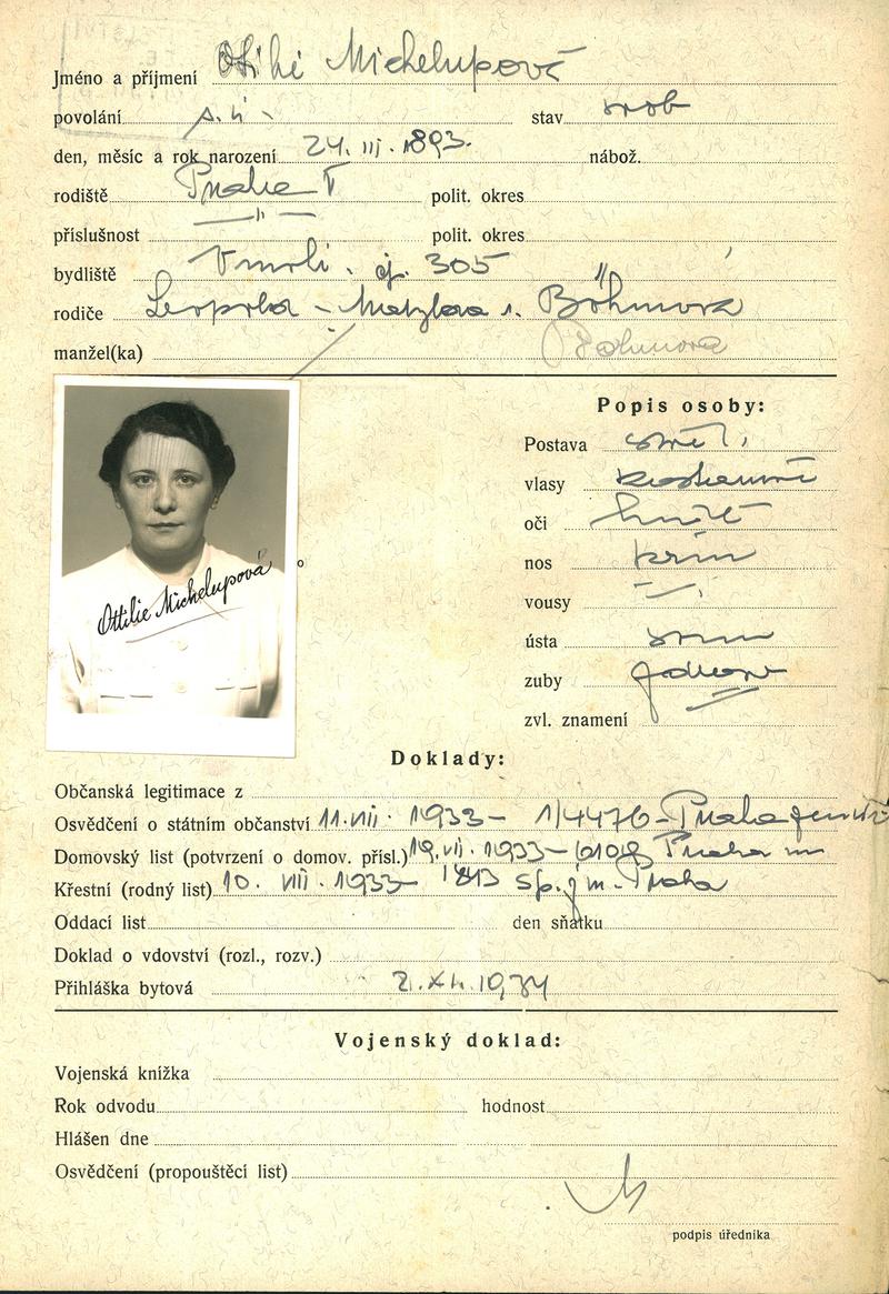 Nationalarchiv Prag > Polizei-Direktion Prag > 1931-1940 > M > Michelupová Otylie