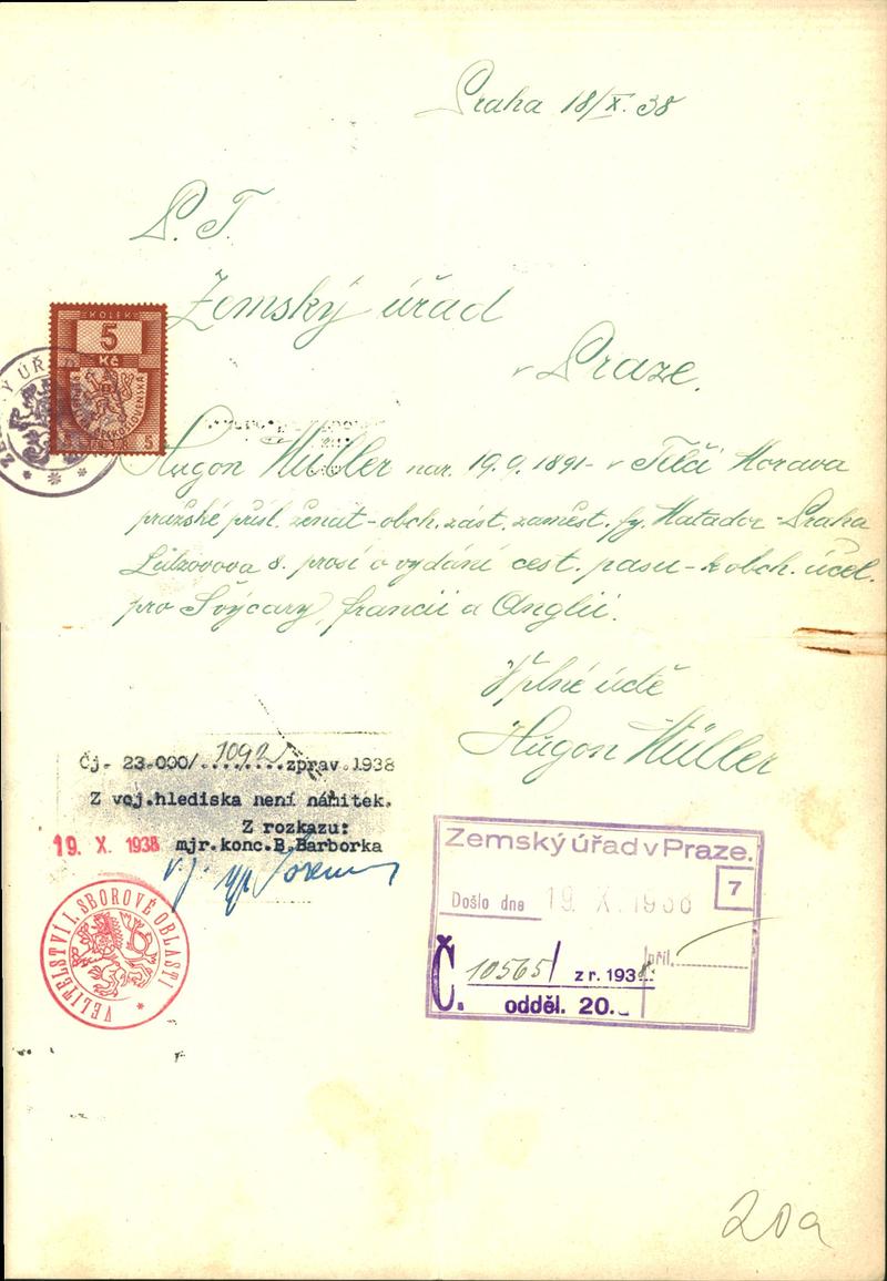 Nationalarchiv Prag > Polizei-Direktion Prag > 1931-1940 > M > Müller Hugo