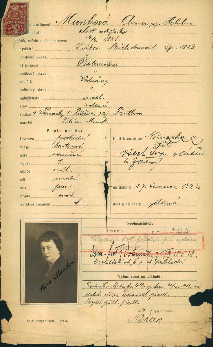 Nationalarchiv Prag > Polizei-Direktion Prag > 1931-1940 > M > Munková Anna