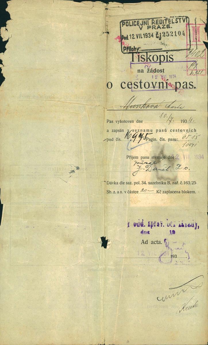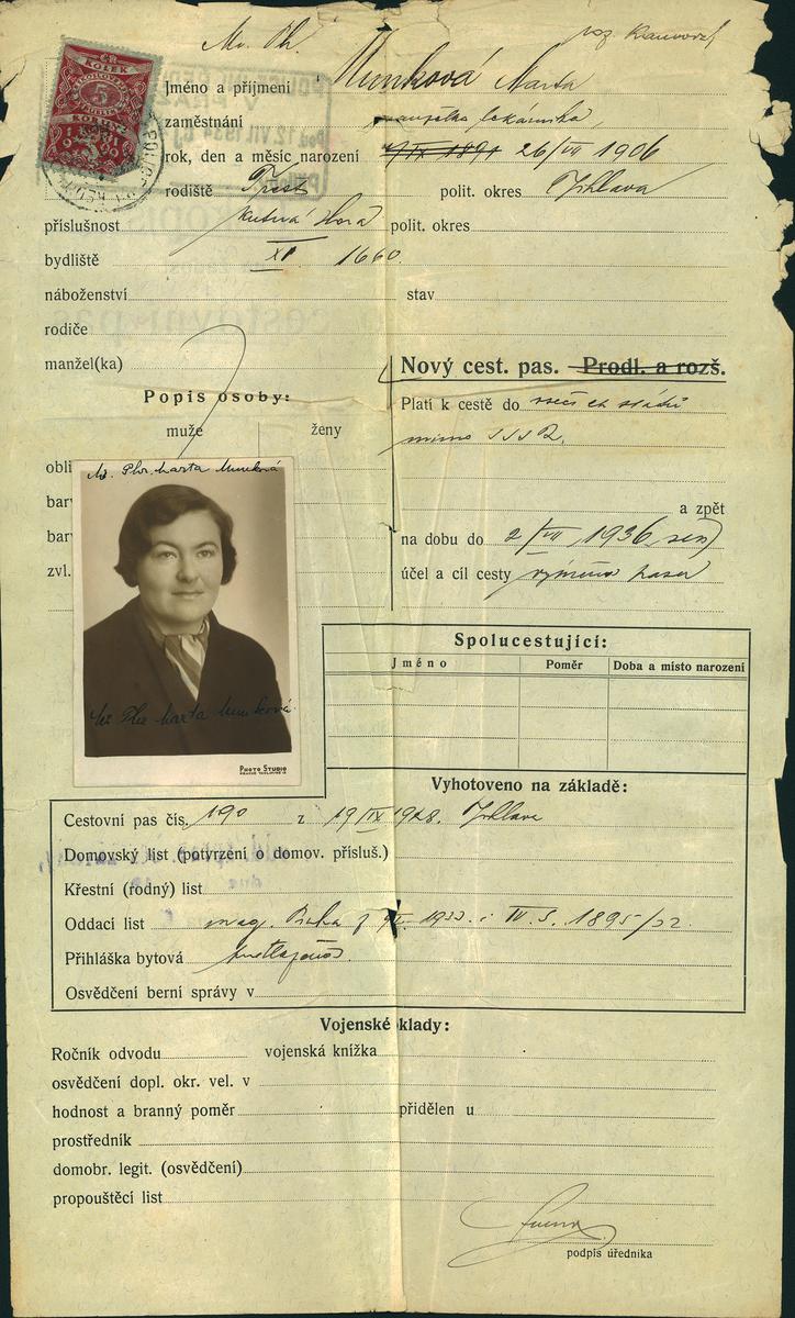 Nationalarchiv Prag > Polizei-Direktion Prag > 1931-1940 > M > Munková Marta