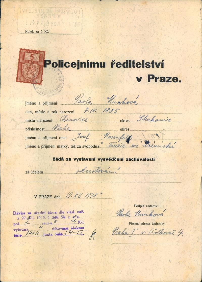 Nationalarchiv Prag > Polizei-Direktion Prag > 1931-1940 > M > Munková Pavla