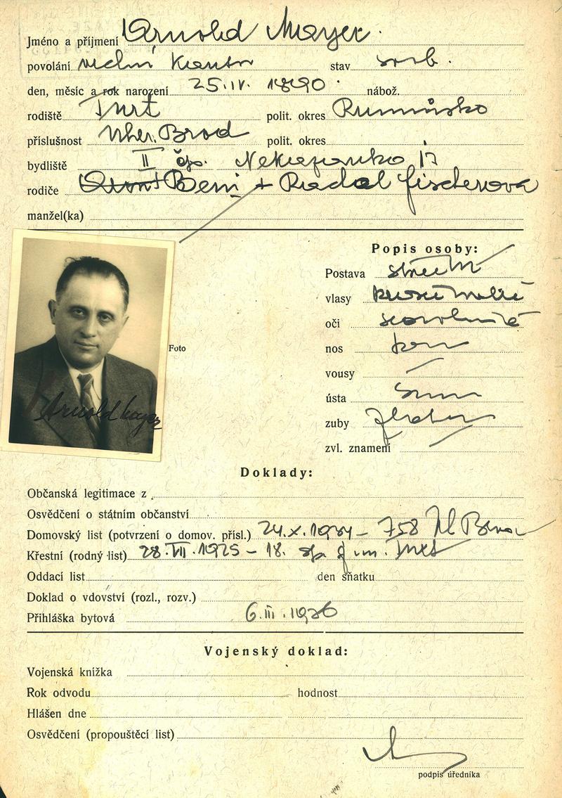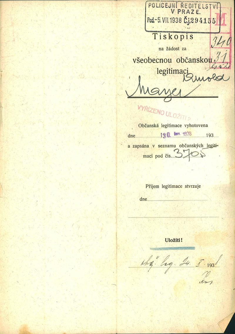 Majer Aron: Žádost o vydání občanské legitimace