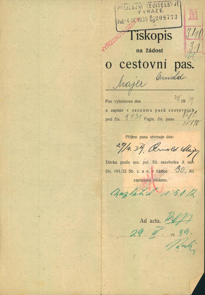 Nationalarchiv Prag > Polizei-Direktion Prag > 1931-1940 > M > Majer Aron