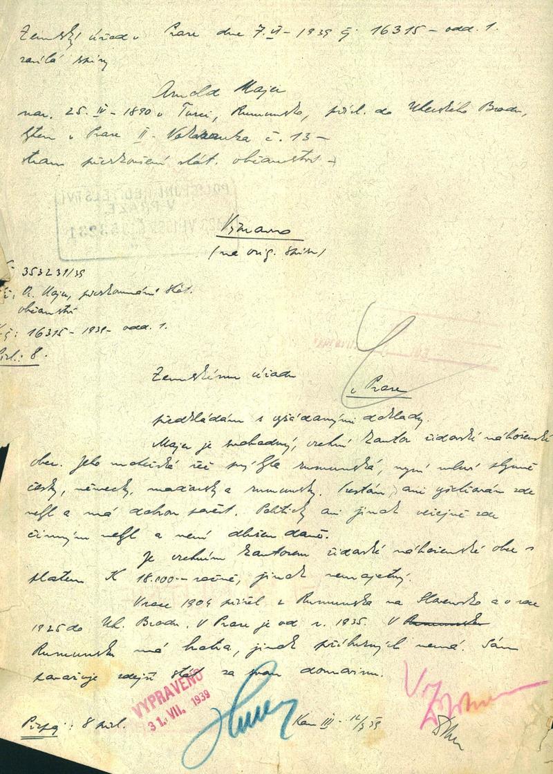 Nationalarchiv Prag > Polizei-Direktion Prag > 1931-1940 > M > Majer Aron