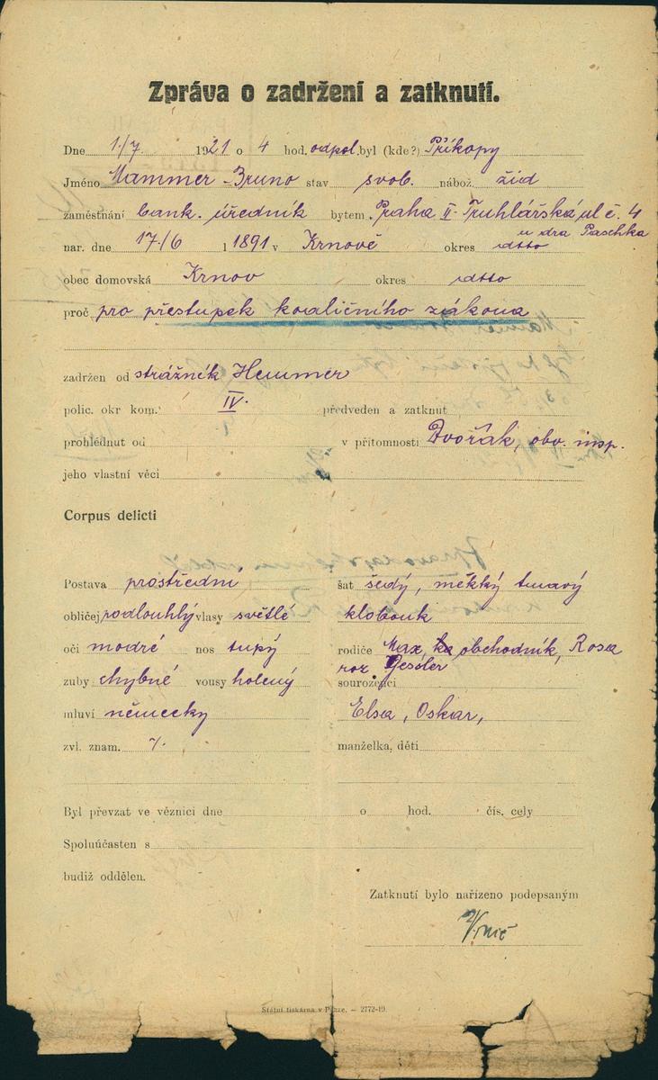 Nationalarchiv Prag > Polizei-Direktion Prag > 1931-1940 > M > Mammer Bruno