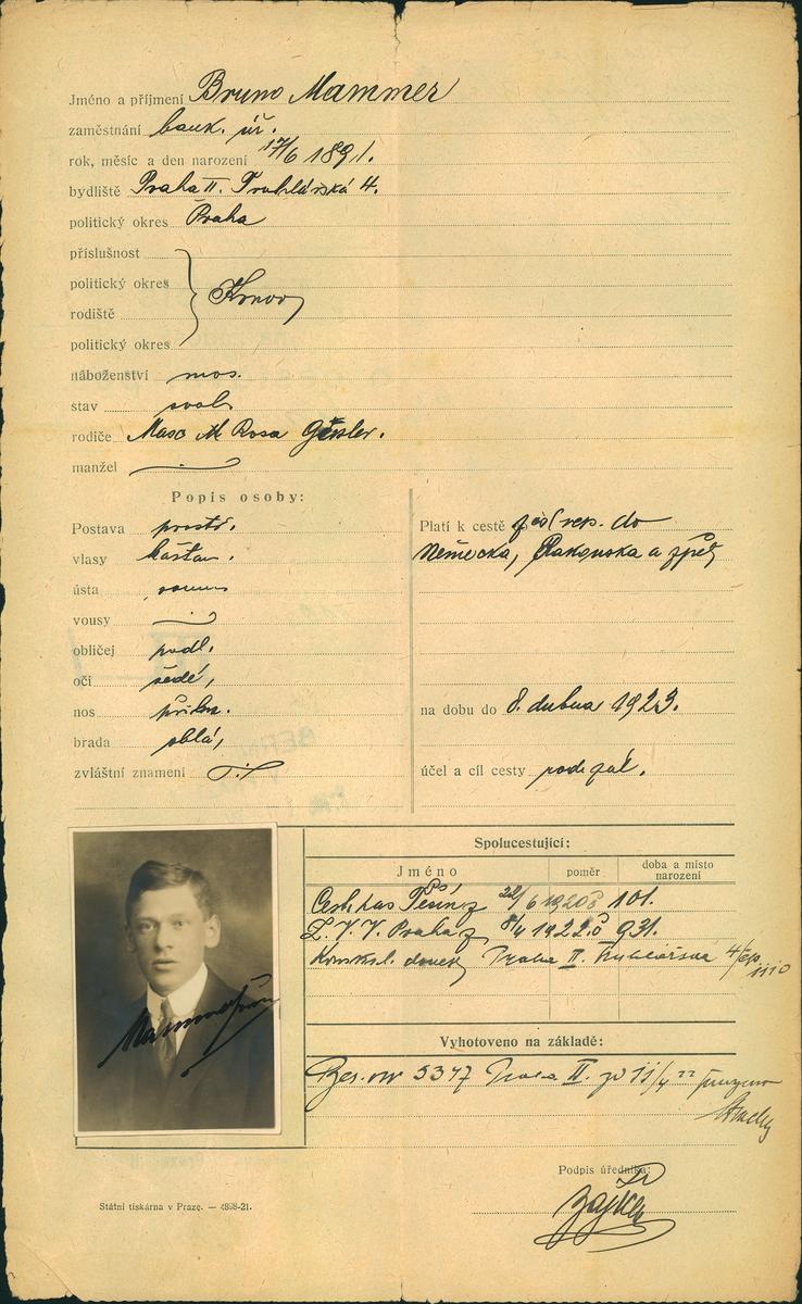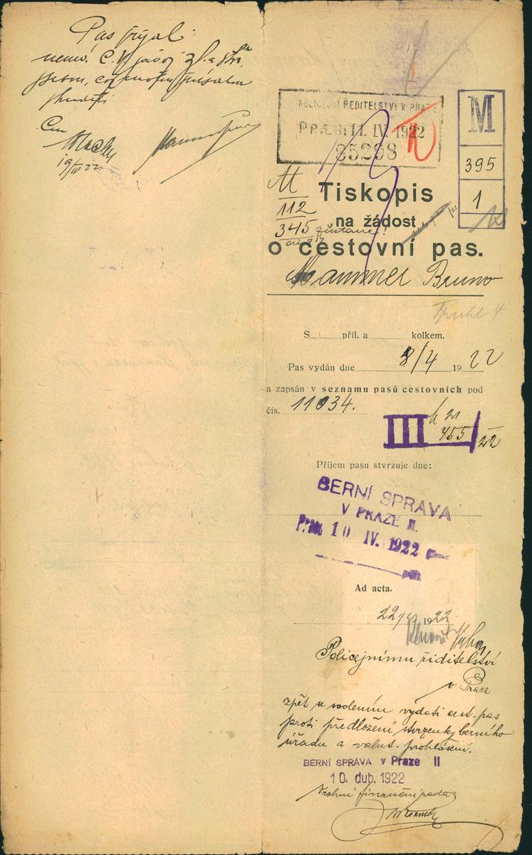 Mammer Bruno: Žádost o vydání cestovního pasu