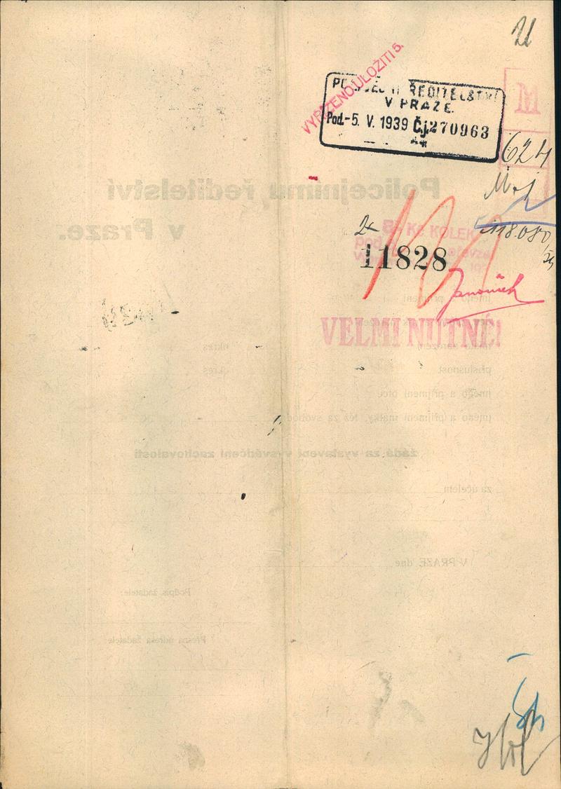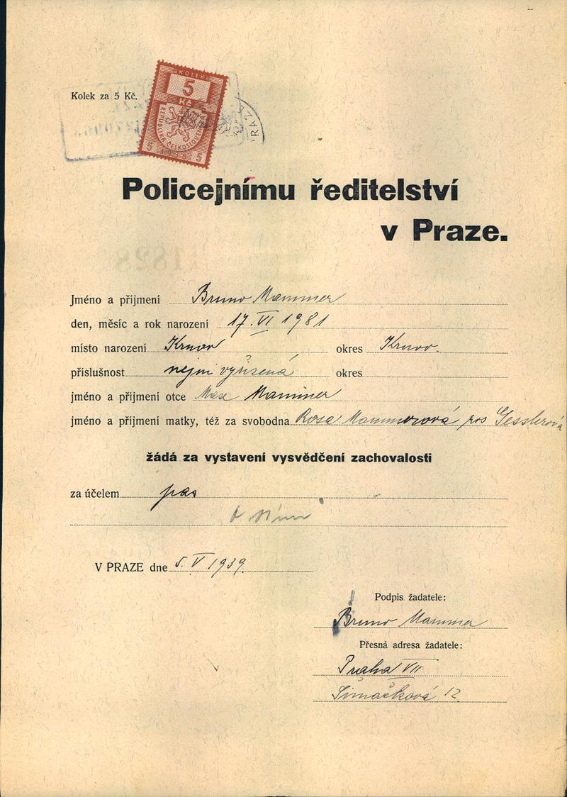 Nationalarchiv Prag > Polizei-Direktion Prag > 1931-1940 > M > Mammer Bruno